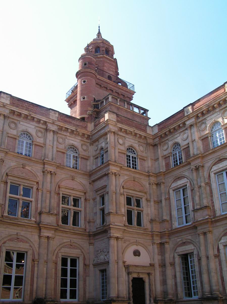 Pierre d'Assézat a donné son nom à l'hôtel et Nicolas Bachelier aurait été l'architecte de ce bâtiment, dont la construction a débuté en 1555. Deux des côtés de la cour comportent une élévation à trois niveaux superposant les trois ordres classiques (ordre ionique, ordre dorique, ordre corinthien) ; il s'agit, avec la Cour Carrée du Louvre construite par Pierre Lescot à partir de 1546, d'une des premières manifestations du classicisme français.