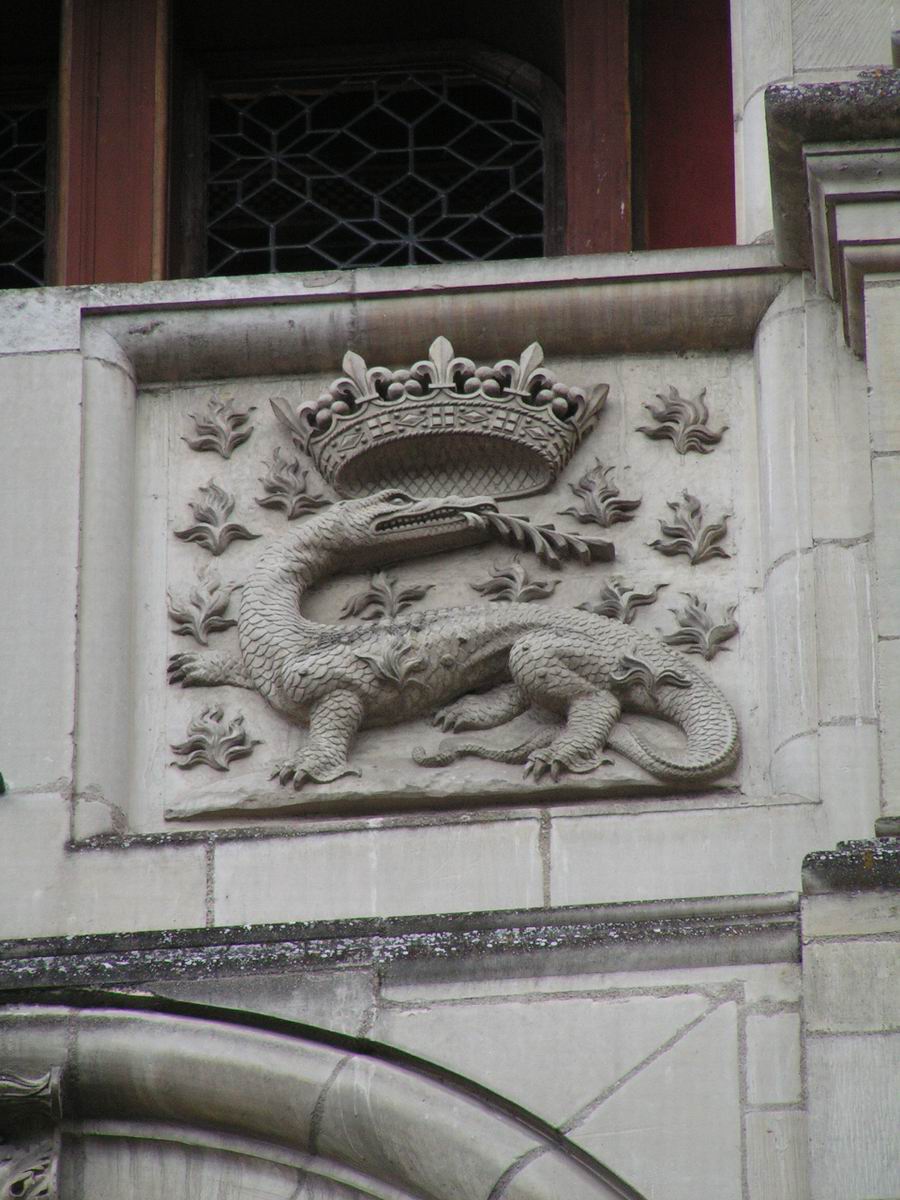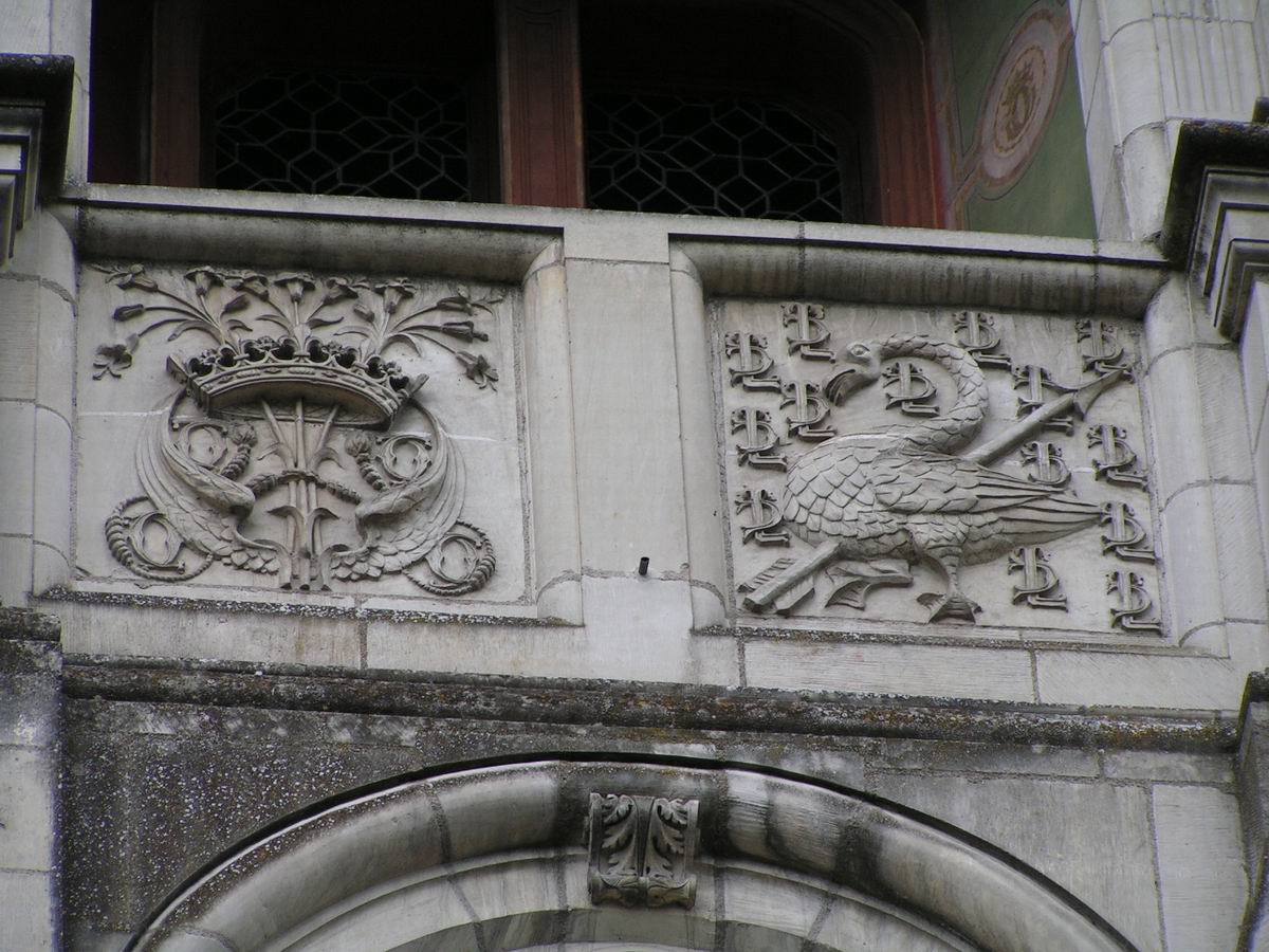 Blois, Chateau, Aile Francois Ier, Plaque decorative, Cygne transperce d'une fleche.jpg